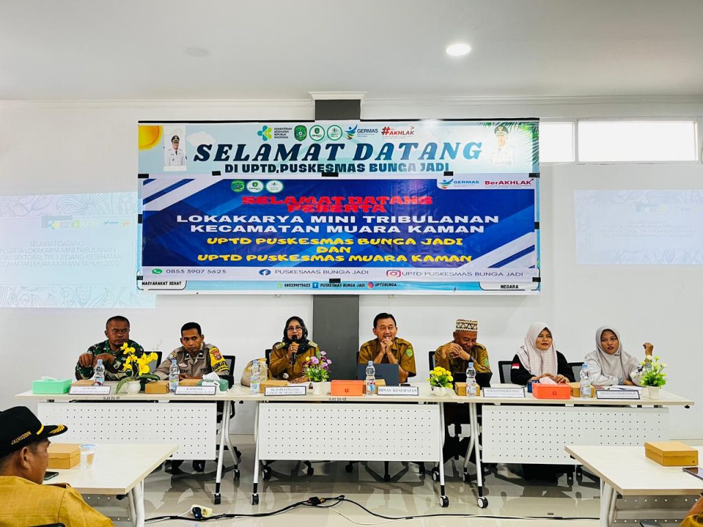 Muara Kaman, 21 Oktober 2025 — Puskesmas Bunga Jadi menjadi lokasi pelaksanaan Lokakarya Mini Tribulanan Kecamatan Muara Kaman yang dihadiri oleh Forkopimcam (Forum Koordinasi Pimpinan Kecamatan), Kepala Puskesmas Muara Kaman, serta narasumber dari Kepala Bidang Dinas Kesehatan Kabupaten Kutai Kartanegara.