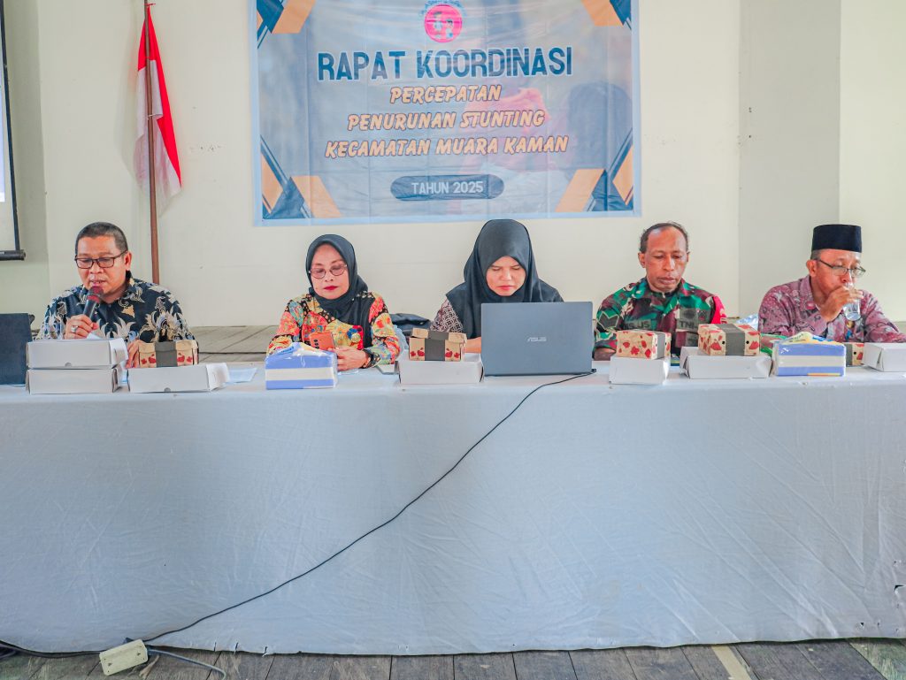 Sementara itu, Kepala Puskesmas Muara Kaman memaparkan kondisi terkini prevalensi stunting berdasarkan data pemantauan balita. Ia menekankan perlunya peningkatan cakupan intervensi gizi spesifik dan sensitif, termasuk pemberdayaan kader posyandu serta pemeriksaan kesehatan ibu hamil dan balita secara rutin.